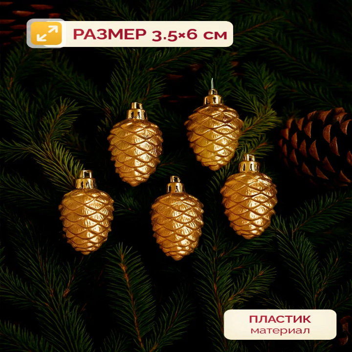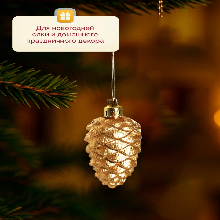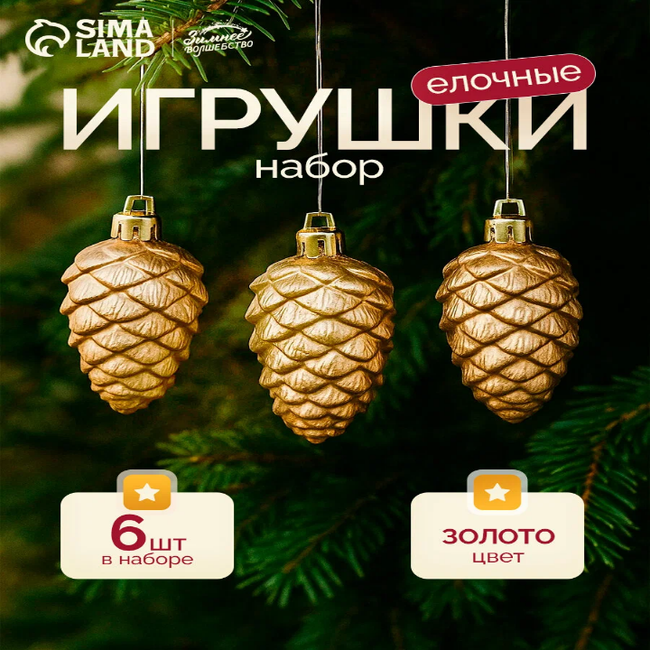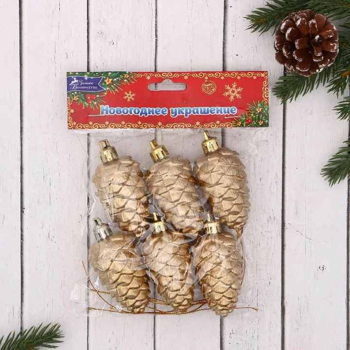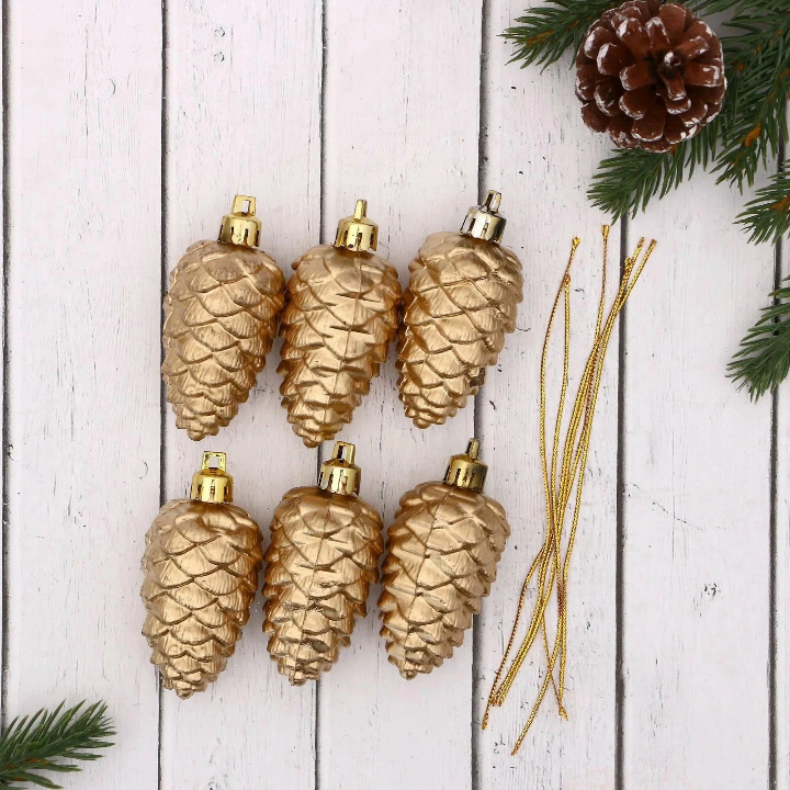 Набор ёлочных игрушек "Шишки" от "Зимнее волшебство" - это изысканный выбор для украшения вашей ёлки. В комплекте вы найдете 6 элегантных золотистых шишек высотой 6 см каждая. Дизайн этих украшений сочетает в себе классический стиль и элементы ар-деко, создавая неповторимую атмосферу новогоднего торжества. Выразительная текстура и благородный золотой цвет придают шишкам особую торжественность и элегантность. Легкость пластика обеспечивает удобство использования и хранения. Теплый золотой оттенок украшений наполняет пространство уютом и праздничным настроением, делая интерьер по-настоящему торжественным. Позвольте этим великолепным украшениям стать частью ваших новогодних традиций, создавая атмосферу волшебства и радости в самые долгожданные дни года!