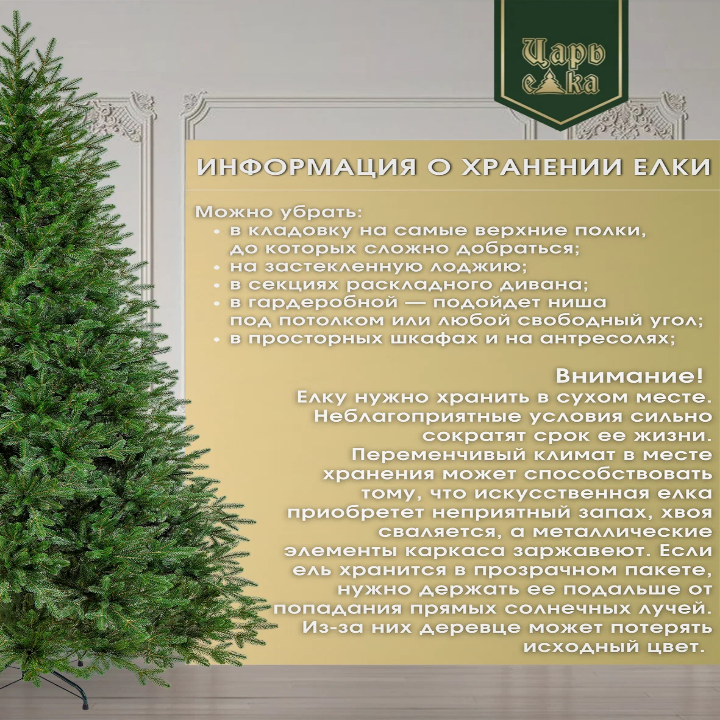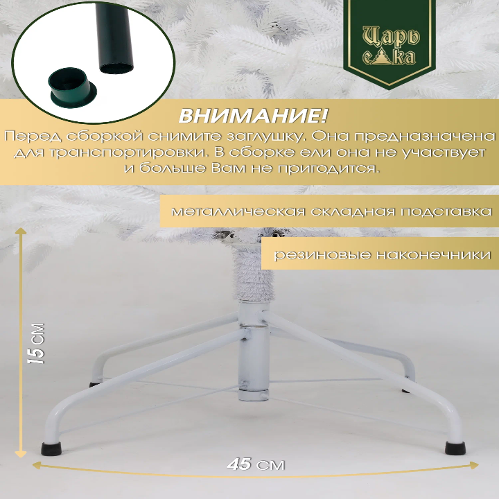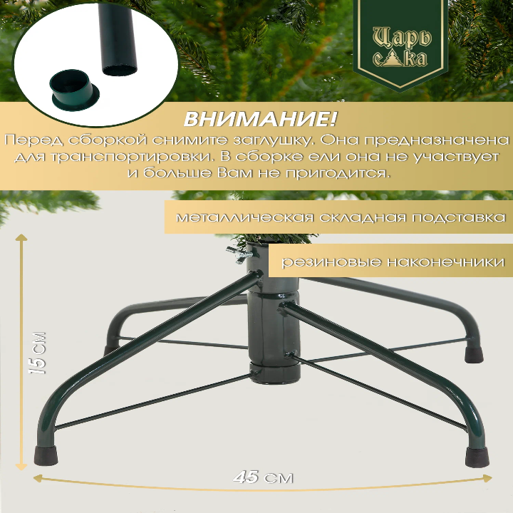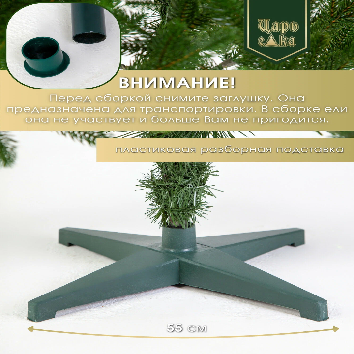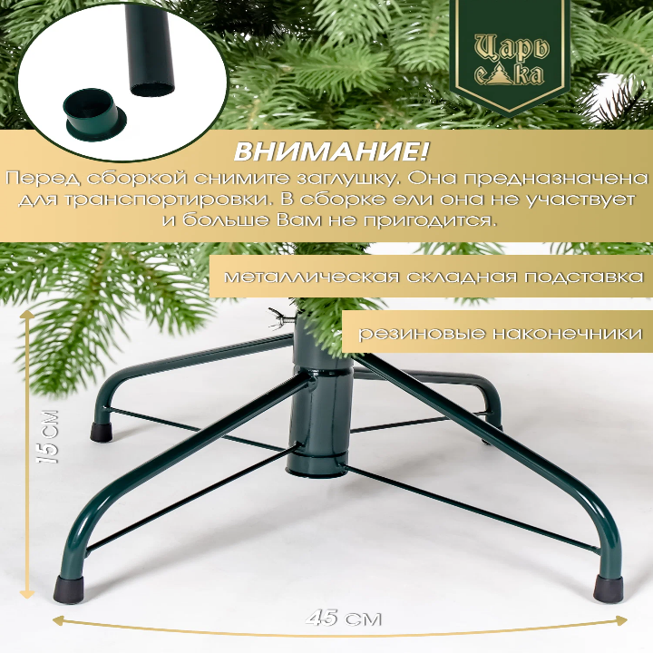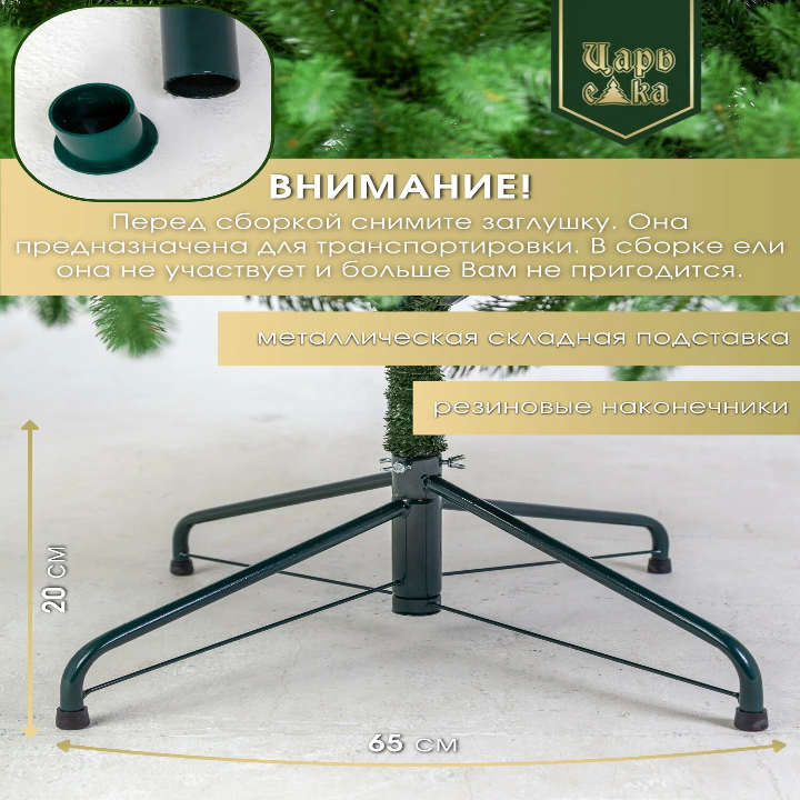 Представляем Вам роскошную искусственную литую елку Беверли высотой 210 см от бренда "Царь Елка" – настоящую звезду новогодних праздников! Эта модная ель с густой 100% литой хвоей из полиэтилена порадует Вас реалистичностью. Веточки настолько детально выполнены, что ель не отличить от настоящего дерева. Высота ели с учетом подставки составляет 2.1 м, расстояние от пола до нижнего яруса веток – 30 см, что создает идеальные пропорции для Вашего интерьера. Подставка елки диаметром 65 см. выполнена из прочного металла, обеспечивая надежность и устойчивость сборной конструкции. Пушистая ель состоит из 3 частей, шарнирное крепление веток к стволу гарантирует прочность и удобство. Сборка ели проста: нужно достать елочку из коробки и соединить все части между собой. Не забудьте снять со ствола защитную пластиковую заглушку, она не является частью елки и служит только защитой при транспортировке. Ветки под своим весом сами расправятся, благодаря шарнирному креплению к стволу, нужно будет только отогнуть все веточки, придавая густоту и пышность. Металлический ствол ели задекорирован ПВХ пленкой. В этой елке 1911 веточек, что создает невероятно густую, пышную и красивую форму. Хвоя ели мягкая натурального природного оттенка с детальным прокрасом, не осыпается и сохраняет форму много лет. Елка упакована в плотную картонную коробку, что обеспечивает надежность и удобство при хранении и транспортировке. Создайте неповторимую праздничную атмосферу с этой новой, красивой, безопасной и гипоаллергенной елкой! Наша лучшая елка прекрасно подойдет для украшения различных интерьеров: квартиры, дома, фотостудии, офиса, детского сада или школы. Ель произведена в России. Желаем счастливого Нового года и Рождества!