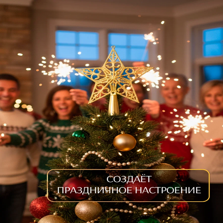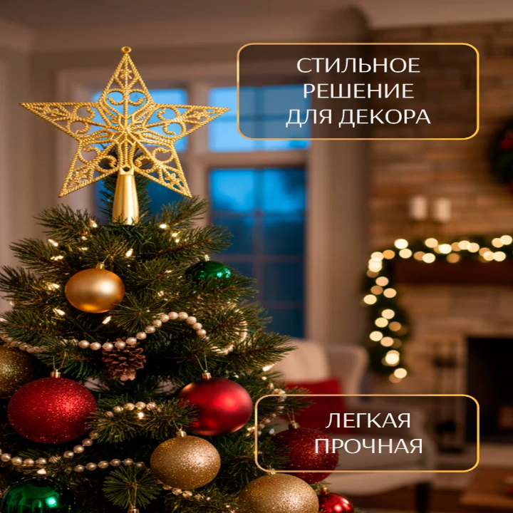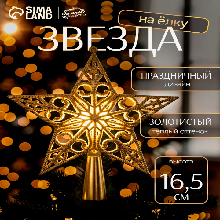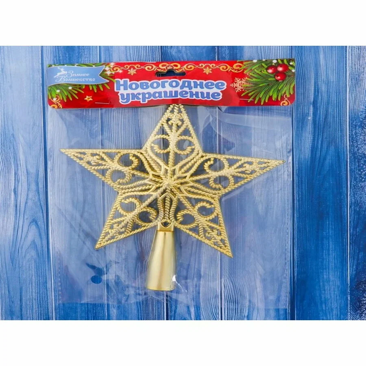 Создайте неповторимый образ праздничной ёлки с роскошной звездой «Рельефный узор»! Этот изысканный наконечник размером 14,5х16,5 см станет великолепным завершением новогоднего декора, наполнив дом атмосферой зимней роскоши и торжественности. Художественный дизайн в стиле классики и новогоднего барокко с элементами ар-деко создаёт неповторимый образ. Золотистый оттенок напоминает тёплый свет зимних окон, а изысканный резной узор добавляет украшению объём и художественную ценность. Изысканное исполнение превращает обычную звезду в настоящий шедевр праздничного декора. Морозные орнаменты и изящные линии создают эффект зимней сказки, делая украшение центральным элементом праздничного убранства. Превосходный подарок на Новый год — эта великолепная звезда станет незабываемым презентом для ценителей роскошного праздничного оформления. Она поможет создать неповторимую атмосферу волшебства в любом доме, даря радость и вдохновение в праздничные дни. Практичное решение из качественного пластика гарантирует долговечность и сохранность внешнего вида. Универсальный размер 16,5 см делает украшение идеальным для средних ёлок, не нарушая гармонию композиции. Позвольте этой золотистой красавице стать кульминацией вашего новогоднего декора! Её рельефные грани, украшенные изящным узором, будут ловить свет гирлянд, создавая волшебное мерцание, напоминающее зимнюю зарю. Создайте незабываемую атмосферу праздника вместе со звездой «Рельефный узор» — символом роскоши и уюта!