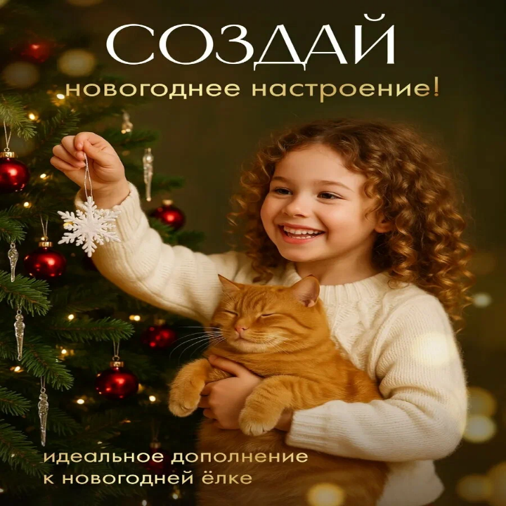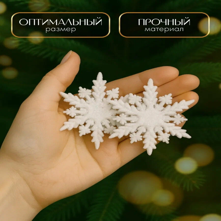 Создайте неповторимую атмосферу зимней сказки с набором белоснежных резных снежинок! Эти изысканные ёлочные украшения мастерски сочетают в себе скандинавскую строгость, классическую элегантность и утончённость ар-деко, превращая обычный декор в настоящее произведение искусства. Изысканный дизайн снежинок с перфорированной текстурой и матовым блеском создаёт неповторимый эффект мерцающего снега, когда игрушки отражают свет гирлянд. Белый цвет идеально вписывается как в монохромные композиции, так и в контрастные сочетания с деревянными и золотыми элементами. Этот восхитительный подарок на Новый год станет настоящим сокровищем для ценителей утончённого декора. Он не только украсит ёлку, но и наполнит дом атмосферой волшебства и уюта, создавая особое настроение в праздничные дни. Крупный размер 6 см делает снежинки идеальными для создания центральных акцентов – их можно разместить на ёлке, люстре или настенных гирляндах. Геометрия форм в сочетании с деревянными элементами и зеркальными деталями создаёт гармоничный образ. Универсальность применения позволяет использовать эти украшения как основу для праздничного декора или дополнять ими другие элементы оформления. Резные узоры каждой снежинки уникальны, словно настоящие снежинки, упавшие с неба. Создайте запоминающийся праздничный ансамбль с помощью этих очаровательных украшений! Их лаконичность и элегантность не теряют актуальности годами, а белоснежный цвет и изящные узоры добавляют интерьеру особую торжественность и благородство. Подарите себе и своим близким частичку новогоднего чуда с этим великолепным набором, который поможет создать атмосферу настоящего праздника без излишней вычурности, сохраняя традиции и добавляя в них современные нотки.