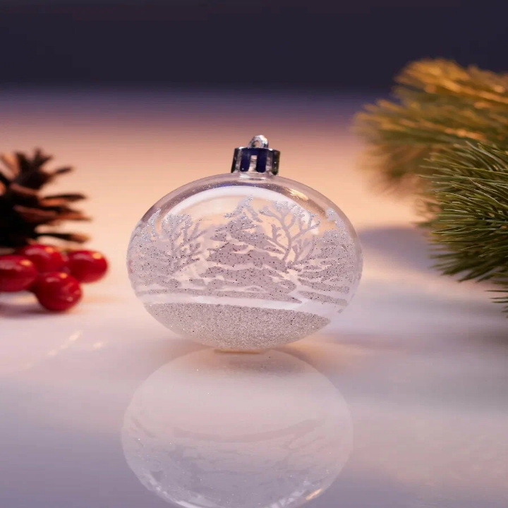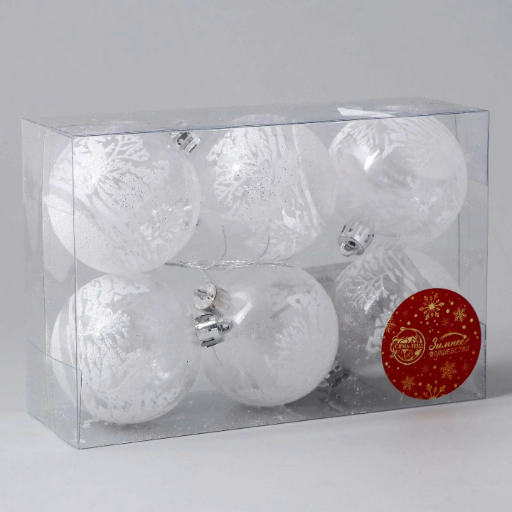 Погрузитесь в атмосферу зимней сказки с набором шаров «Изморозь»! Шесть изысканных игрушек диаметром 6 см превратят вашу ёлку в настоящее произведение искусства, где каждый шар словно хранит в себе волшебство морозного утра и красоту ледяных узоров на стекле. Изысканный дизайн этих пластиковых украшений воплощает в себе всю прелесть зимнего утра. Геометричные узоры, напоминающие изморозь на окне, создают неповторимую атмосферу праздника, не перегружая интерьер лишними деталями. Этот чудесный подарок на Новый год станет настоящим украшением праздничного сезона и порадует всех ценителей стильного декора. Он не только преобразит вашу ёлку, но и создаст особую атмосферу волшебства, наполняя пространство светом и предвкушением чуда. Универсальность применения делает эти украшения идеальными для любого интерьера — от классического до современного ар-деко. Белый цвет с прозрачными элементами гармонично сочетается с любым стилем оформления, добавляя пространству праздничности и уюта. Прочность и качество пластиковых шаров гарантируют долговечность и сохранение первозданного вида. Диаметр 6 см позволяет создавать гармоничные композиции, где каждый элемент играет свою роль в общей картине праздника. Позвольте себе и своим близким насладиться красотой утончённого новогоднего убранства! Эти уникальные шары словно хранят в себе морозные узоры и создают неповторимую праздничную атмосферу, наполняя дом теплом и уютом. Создайте неповторимый новогодний интерьер с помощью этого элегантного набора, который станет центром притяжения праздничного внимания. Пусть каждая игрушка на вашей ёлке расскажет свою особенную историю, наполненную светом, красотой и волшебством зимнего чуда. Сделайте свой праздник незабываемым с этими очаровательными украшениями, которые будут радовать вас год за годом, сохраняя свою магию и очарование.