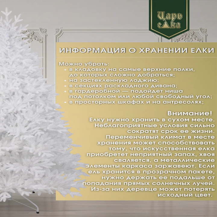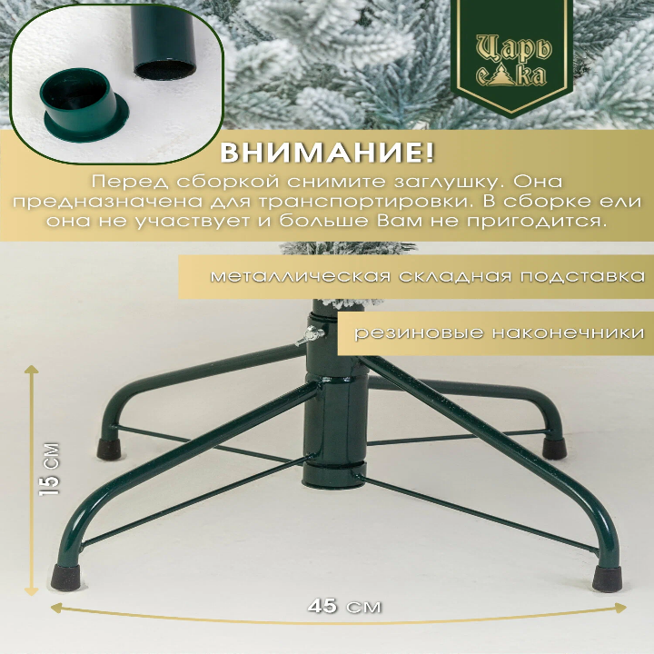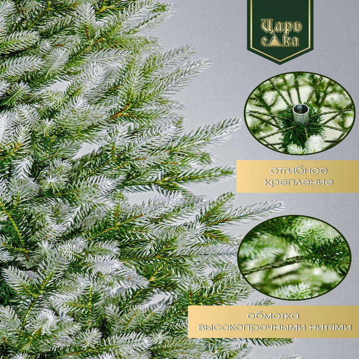 Это одна из заснеженных моделей бренда Царь Елка. Литая елка прослужит Вам очень долго и Вы можете быть уверены, что хвоя не помнется, ведь веточки быстро расправляются и восстанавливают форму после сезонного хранения, а значит внешний вид елки ничуть не испортится. Сборка такой елки проста: Вам нужно только достать елку из коробки, отогнуть ветки от ствола и расправить каждую веточку под углом в 45 градусов. Елка готова дарить праздничное настроение! Ствол ели и ветви задекорированы хвоей из материала - пленка ПВХ. Технология декорирования пленкой ПВХ металлических частей ствола и веток применяется во всех елках премиум исполнения. Вы можете использовать любые украшения и игрушки, такая елка подарит новогоднее волшебство даже если на ней будет одна гирлянда, да и вовсе без украшений данная ель подарит Вам чудесную атмосферу праздника. Ваша новая елка порадует Вас и Ваших родных и близких!