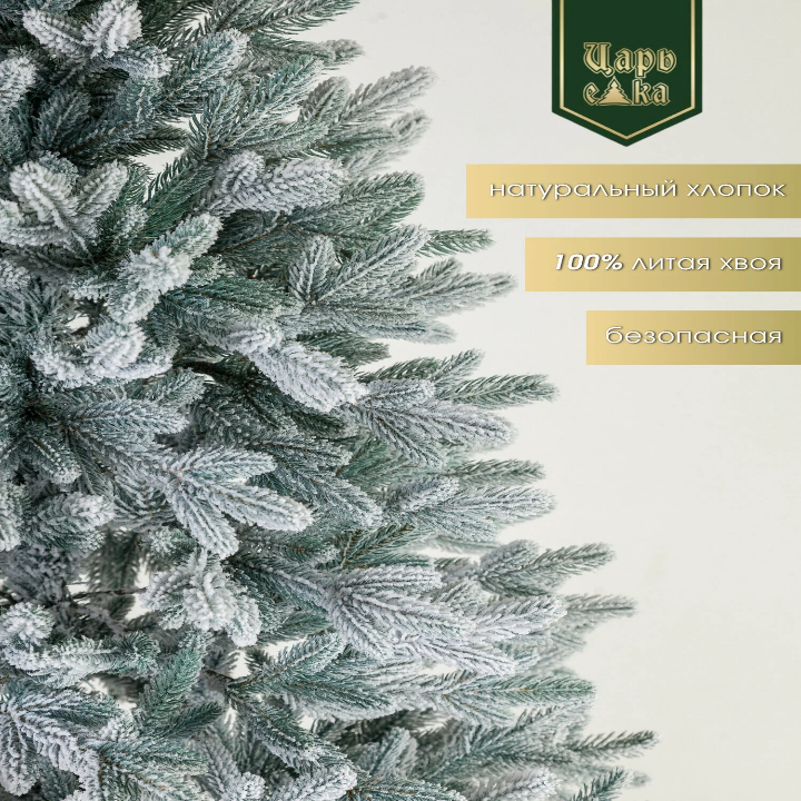 Встречайте нашу самую популярную заснеженную ёлку в трёх размерах, которые вы заказываете чаще всего: 1.80 м, 2.10 м, 2.30 м. • Ёлка на 100% литая, то есть все веточки выглядят как у настоящей живой ёлки. • Покрытие искусственным снегом выполнено из 100% хлопка, что делает ёлку полностью экологичной и безопасной. • Металлическая подставка в комплекте. • Упакована в картонную коробку.