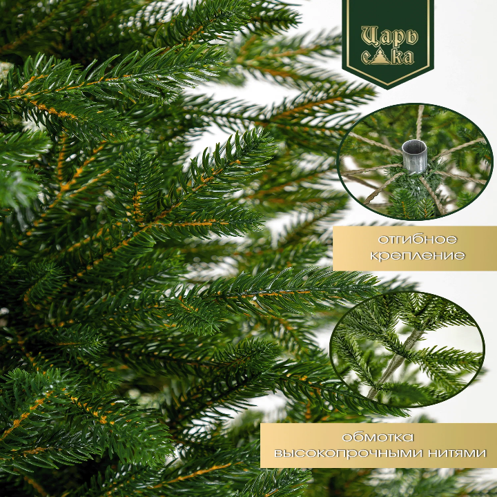 Представляем Вам роскошную искусственную литую елку Афродита высотой 180 см от бренда "Царь Елка" – настоящую звезду новогодних праздников! Эта модная ель с густой 100% литой хвоей из полиэтилена порадует Вас реалистичностью. Веточки настолько детально выполнены, что ель не отличить от настоящего дерева. Высота ели с учетом подставки составляет 1.8 м, расстояние от пола до нижнего яруса веток – 30 см, что создает идеальные пропорции для Вашего интерьера. Подставка елки диаметром 45 см. выполнена из прочного металла, обеспечивая надежность и устойчивость сборной конструкции. Пушистая ель состоит из 3 частей, шарнирное крепление веток к стволу гарантирует прочность и удобство. Сборка ели проста: нужно достать елочку из коробки и соединить все части между собой. Не забудьте снять со ствола защитную пластиковую заглушку, она не является частью елки и служит только защитой при транспортировке. Ветки под своим весом сами расправятся, благодаря шарнирному креплению к стволу, нужно будет только отогнуть все веточки, придавая густоту и пышность. Металлический ствол ели задекорирован ПВХ пленкой. В этой елке 1609 веточек, что создает невероятно густую, пышную и красивую форму. Хвоя ели мягкая натурального природного оттенка с детальным прокрасом, не осыпается и сохраняет форму много лет. Елка упакована в плотную картонную коробку, что обеспечивает надежность и удобство при хранении и транспортировке. Создайте неповторимую праздничную атмосферу с этой новой, красивой, безопасной и гипоаллергенной елкой! Наша лучшая елка прекрасно подойдет для украшения различных интерьеров: квартиры, дома, фотостудии, офиса, детского сада или школы. Ель произведена в России. Желаем счастливого Нового года и Рождества!
